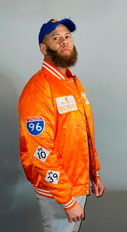 Detroit Day Satin Jacket (Orange w/ Black Letters)